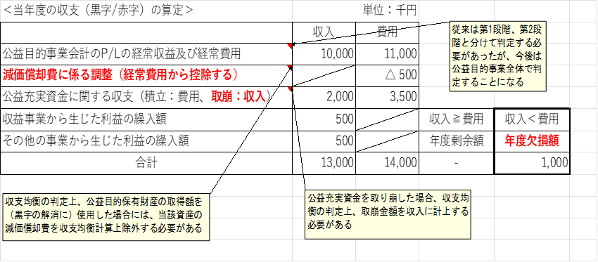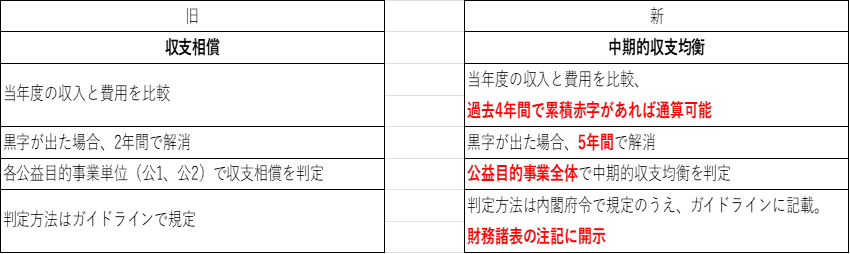 今改正により、収支均衡の判定は、単年度ではなく中期的期間(5年)で行うことが明文化され、収支相償から中期的収支均衡の判定に変わります。